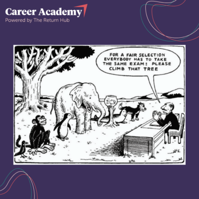 The Career Academy is a complete on-line career portal. It offers interactive tools and e-learning content designed to navigate the current job market and recalibrate your career with confidence. Dip in and out as you need. Contact us if you can’t find what you need.